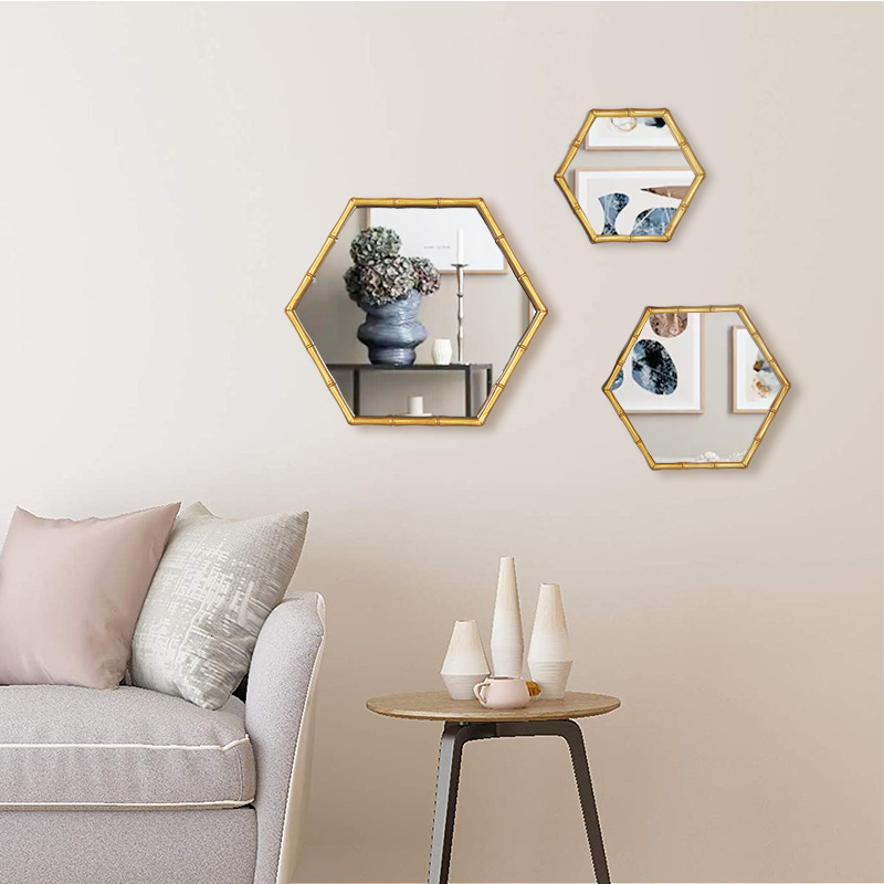 Hexagonal French Vintage Slub Mirror Plastic Wall Decoration Mirror Bathroom Three-Piece Combination Mirror Bathroom Mirror